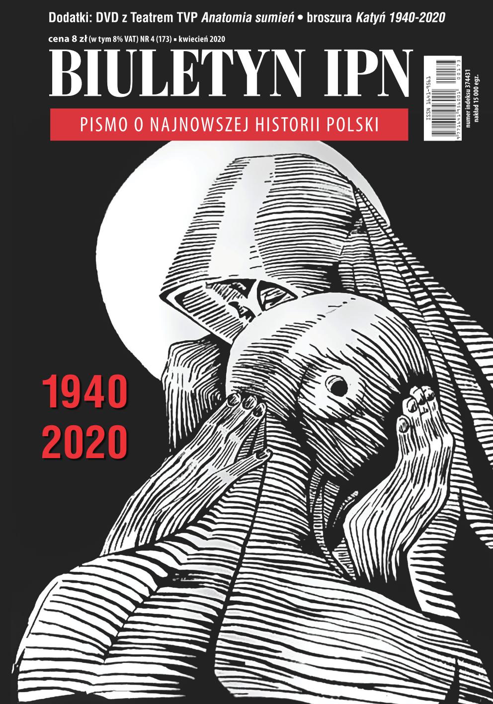 Osiemdziesiąta rocznica zbrodni katyńskiej – to główny temat kwietniowego numeru „Biuletynu IPN”. Dwie główne cechy: służba państwu polskiemu i polski patriotyzm najmocniej określały profil ofiar zbrodni katyńskiej. Kraje zainteresowane zbrodnią katyńską (m.in. Niemcy, ZSRS, Polska i USA) zdołały w latach wojny i po jej zakończeniu przesłuchać od kilkunastu do kilkudziesięciu świadków. Były wśród nich zarówno osoby wiarygodne, jak i konfabulujące, stąd ich świadectwa różnią się rangą i znaczeniem: często są to dokumenty kapitalne, innym razem wręcz bezwartościowe. W numerze opisujemy też, jaki stosunek do polskich jeńców miała okoliczna ludność. Z kłamstwem katyńskim przez cały okres peerelu zmagała się opozycja – prawdę pisano na murach, w ulotkach i drugoobiegowych wydawnictwach; prawdę przypominano też co roku na polskich cmentarzach. W dziesiątą rocznicę tragedii smoleńskiej przedstawiamy główne kierunki działalności śp. prezesa IPN Janusza Kurtyki. Niedługo przed śmiercią prezentował on publikacje Instytutu nt. zbrodni katyńskiej, a w drogę do Katynia zabrał ze sobą „Biuletyn IPN” poświęcony w całości tej sowieckiej zbrodni. Zginęli w drodze do Katynia – przypominamy nazwiska wszystkich, którzy stracili życie 10 kwietnia 2010 r. w Smoleńsku. W numerze przedstawiamy też sylwetki Walerego Sławka, Eugeniusza Bodo, Józefa Czapskiego. Komentujemy spory o postawę i twórczość Zbigniewa Herberta. Krytycznie ukazujemy książkę Tomasza Piątka o Antonim Macierewiczu. Do kwietniowego „Biuletynu IPN” dodaliśmy wyjątkowo dwa bezpłatne dodatki: płytę DVD z teatrem TV Anatomia sumień w reżyserii Grzegorza Królikiewicza broszurę (104 strony) Katyń 1940–2020. Zbrodnia – kłamstwo – pamięć, przedstawiającą aktualny stan wiedzy na temat zbrodni katyńskiej w ujęciu popularnonaukowym: przyczyny i przebieg zbrodni NKWD na Polakach, dzieje kłamstwa, odkrywania prawdy i śledztwa katyńskiego oraz najważniejsze miejsca w kraju i za granicą upamiętniające ofiary.